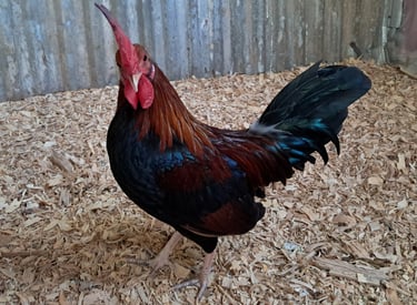 Roosters: Rhode Island Red, Blue Copper Maran, Silver Laced Cochin, Golden Comet, Ameraucana, Praire Bluebell, White Rock, Silver Leghorn, Delaware, Easter Egger.