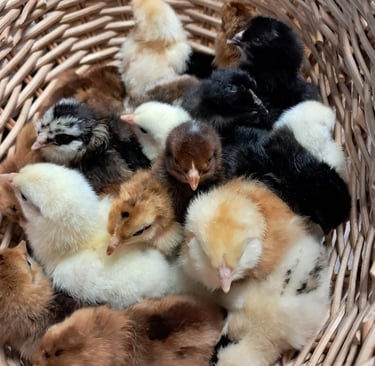 We offer live chicks. They are production barnyard mix & bantams (See about page to see what breeds we have that you could get a mix of) and straight run only, meaning they are not sexed. All chicks are started on organic chick starter and unvaccinated. No stress from shipping and handled with care! Please note that the price of chicks goes up each week that they are on my feed bill. We also offer pullets and laying hens! Roosters are available as well. Fill out the form below to be contacted when chicks hatch and are ready for new homes.